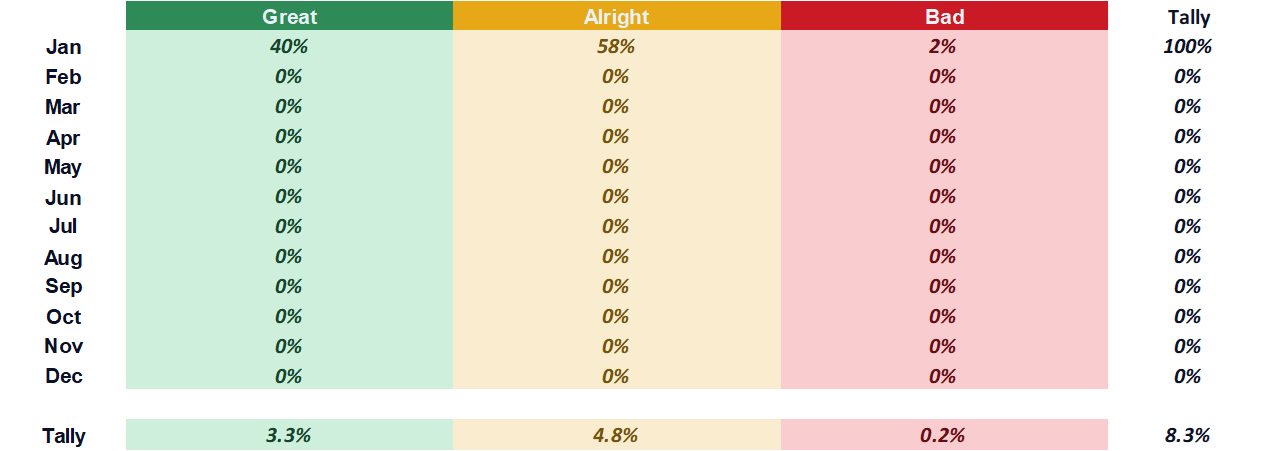 1% of the year is gone and I’ve not even started on my goals. Oh, FYI, we’re at the end of January. 8% of the year’s gone.